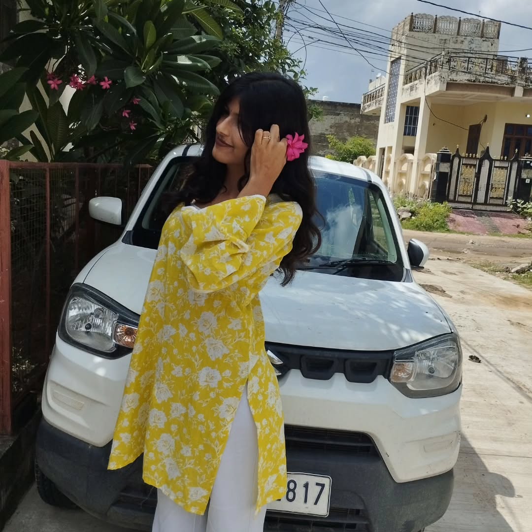 Bahut hi sundar kurti hai ā¤ļøā Fabric soft aur comfortable hai, pehne me bilkul light feel hota hai. Floral print fresh aur classy lagta hai. Sleeves ka design lace ke sath kaafi unique hai. Daily wear aur casual outing dono ke liye perfect choice